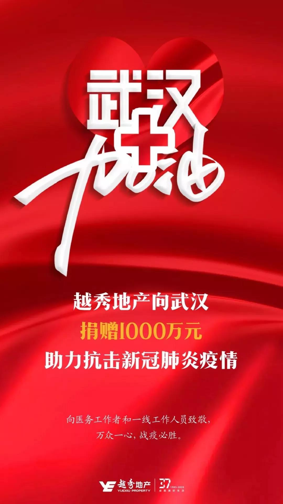 目前正值武汉人民抗击新冠肺炎的关键时期,越秀地产向坚强奉献的广大医务工作者致敬,向奋战在抗击疫情一线的各行各业工作人员致敬!我们将上下一心,众志成城,践行国企担当,同全国人民一起共克时艰,打赢这场没有硝烟的疫情阻击战!