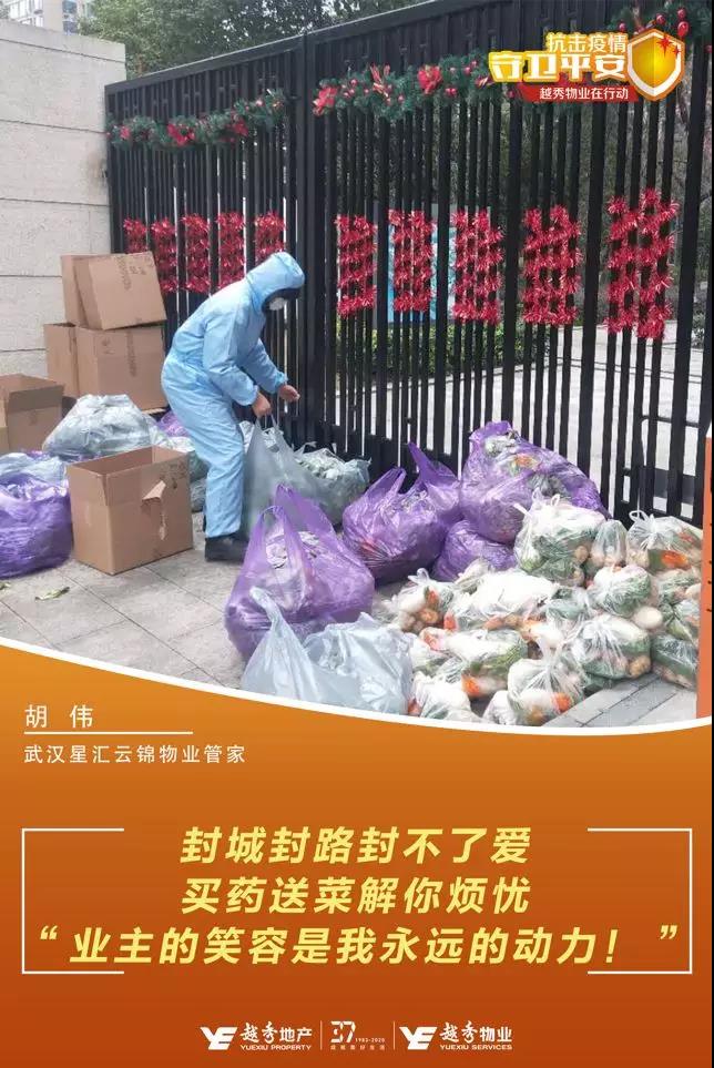 由于春节值班人员少,胡伟送完菜后一刻也没有停歇,兼顾起在管区域的管家工作,为业主买药、拿快递,在星汇云锦B、C区之间来回跑,寒冷的冬天里经常忙得满身大汗。有时看到独居的年迈业主买不到口罩、消毒水等物品,胡伟经常自掏腰包买来送到业主家中。胡伟说,“虽然防疫期间工作很辛苦,但看到业主们脸上开心的笑容,听到业主们感谢的话语,苦点累点都值得。”