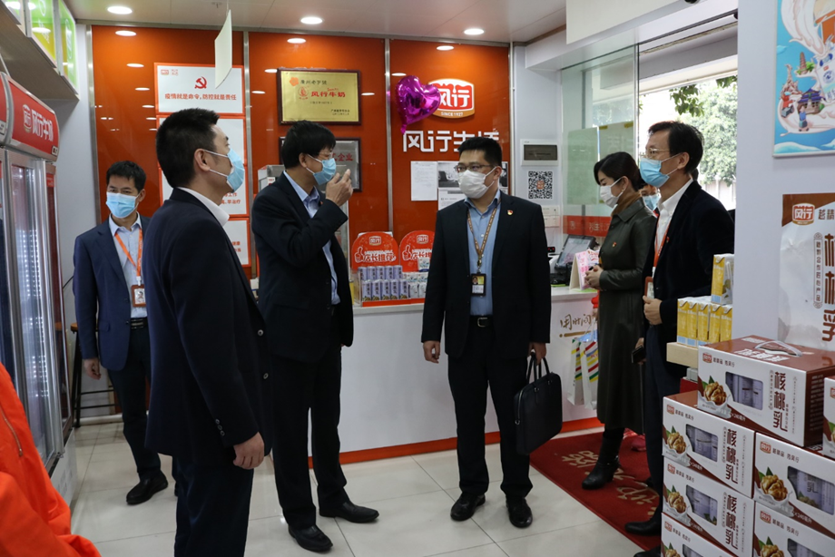 3月5日下午,越秀集团党委副书记、副董事长、总经理叶珊瑚到风行乳业检查疫情防控及复工复产工作,送来企业急需的口罩等防疫用品,并看望慰问了一线员工。越秀集团副总经理、风行集团临时党委书记、董事长林辉新和越秀集团副总经理、风行集团临时党委副书记、副董事长、总经理韦黎明等陪同检查。