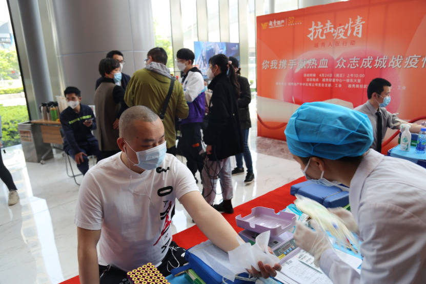 本月初,在武汉市人民政府公民献血领导小组向全市发出无偿献血倡议后,越秀地产立即响应,积极践行国企担当,越秀地产华中区域公司党支部联合越秀地产武汉商管公司党支部迅速向全体员工发出献血倡议,号召员工踊跃参与到无偿献血行动中来。不到两周时间,便收到60多名员工报名,最终当天共有48人成功献血,总献血量12400毫升。