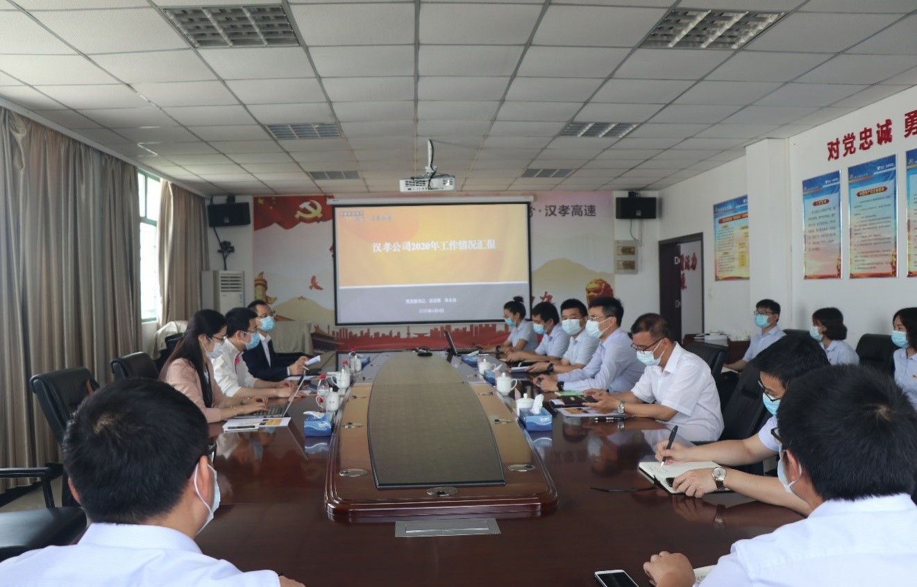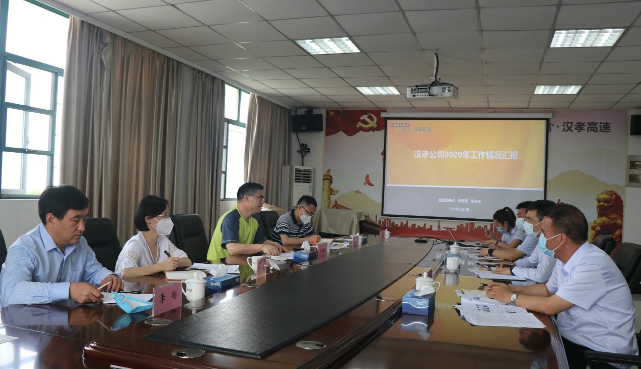 何总、谢书记及潘总在认真听取汉孝公司支部书记、总经理朱永光关于公司2020年上半年经营指标、重点工作推进情况及下半年工作计划的汇报后,对汉孝公司疫情攻坚实现员工“0感染”、全面推进复工复产、营收形势稳起回升、重点工作推进卓有成效等方面给予了高度评价,特别指出汉孝公司在服务区建设开发、招租落地等资产盘活工作上实现了经营增长新突破,是“阳光下作业的典范”。要求汉孝公司继续保持良好势头,统筹兼顾好疫情常态化防控和全面复工复产工作,再接再厉,勇往直前,圆满完成各项工作目标。