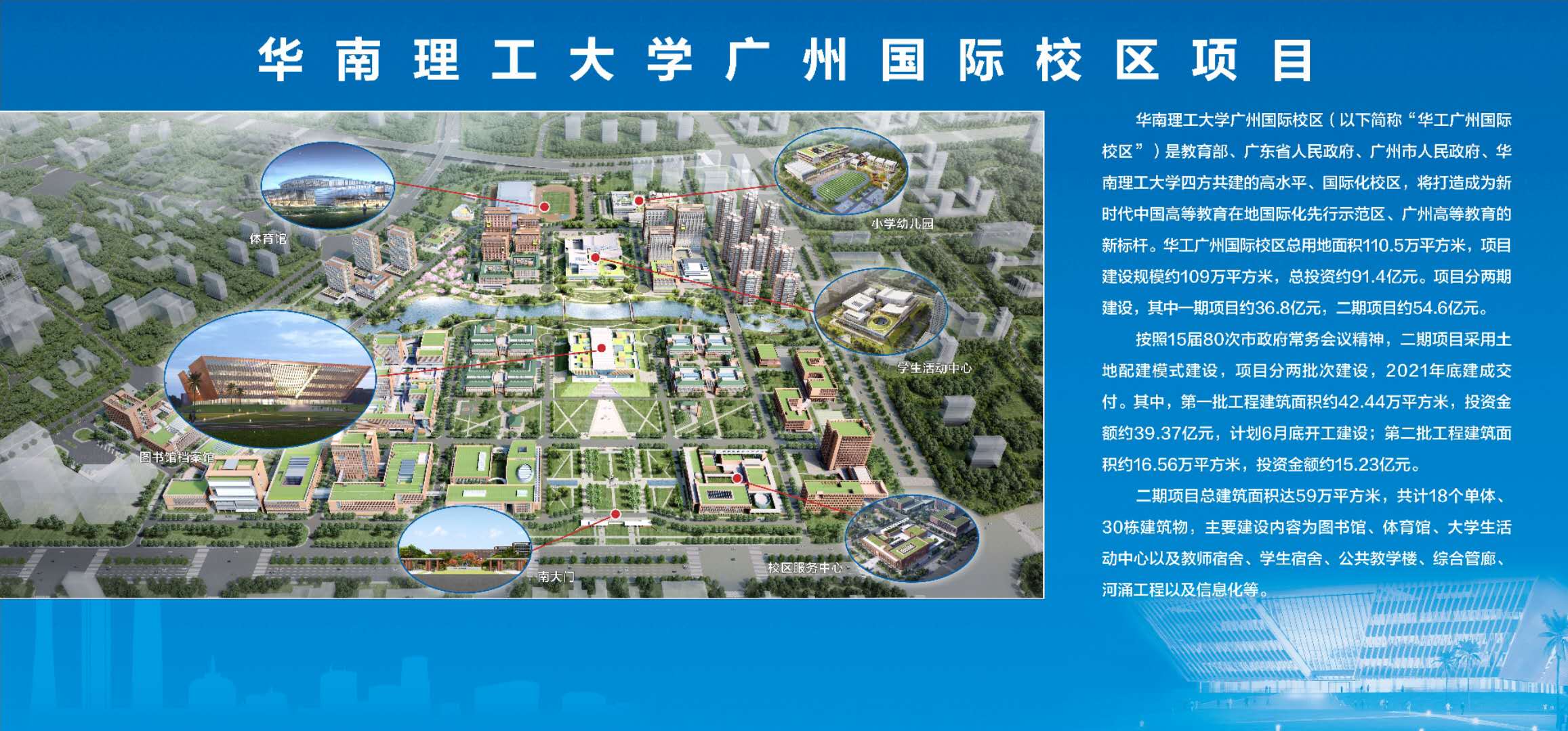 华工广州国际校区是教育部、广东省人民政府、广州市人民政府、华南理工大学四方共建的高水平、国际化大学,项目由越秀地产按照土地配建模式出资建设,校区招生规模约1.2万人,致力于打造成为中国高等教育国际化先行示范区、广州高等教育新标杆,赋能广州发展,助力广州打造大湾区人才培养高地。