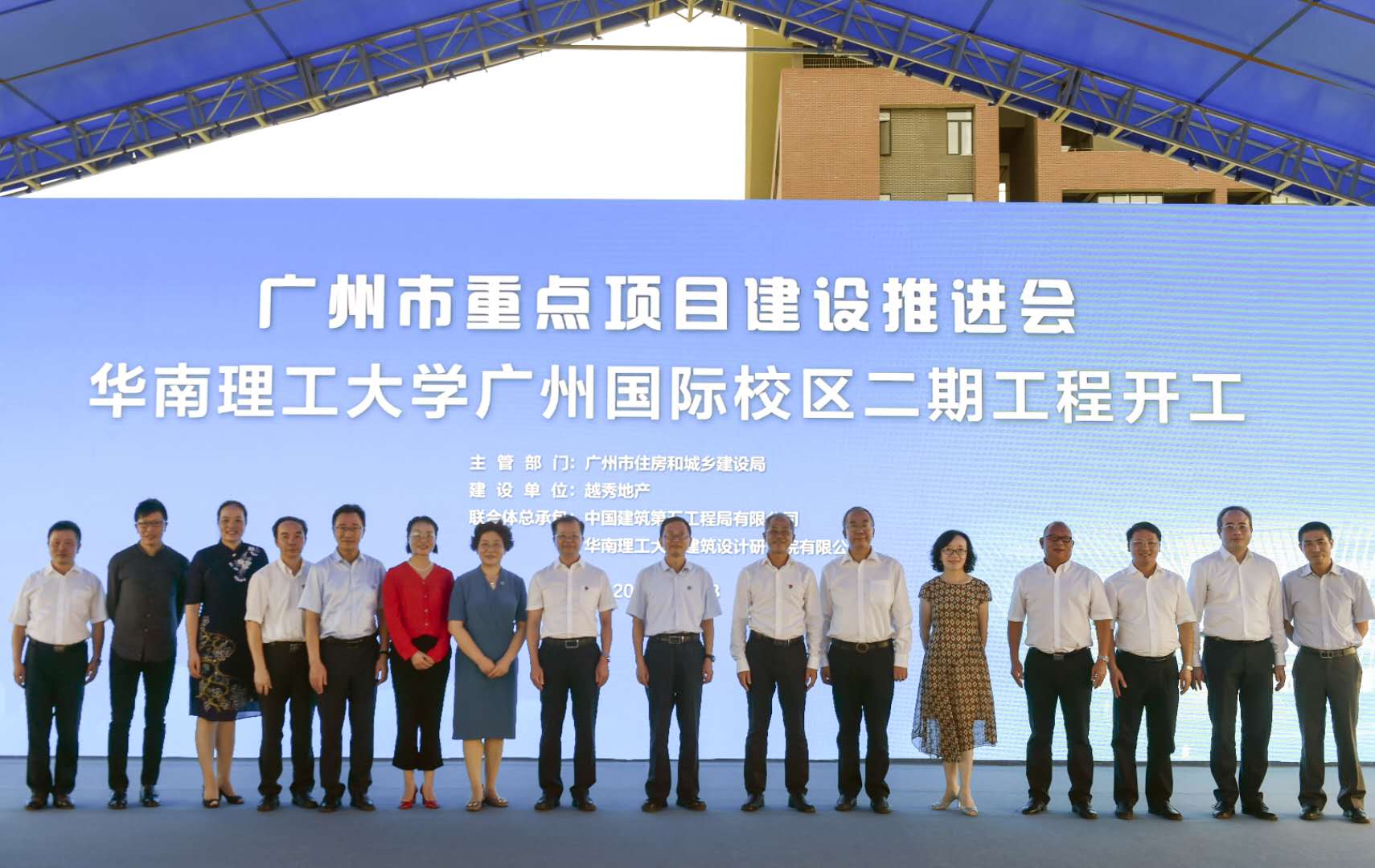 广州市委书记张硕辅、市长温国辉等市领导在主会场出席活动,并共同启动各项目开工仪式。华南理工大学校长高松等校领导,番禺区委副书记、区长陈德俊,广州市住建局副局长齐怀恩,广州市土发中心主任华而实,番禺区副区长朱瑞武,越秀集团党委委员、越秀地产党委书记、董事长林昭远,越秀地产党委副书记、总经理林峰,中建五局党委副书记、总经理江建端等领导在分会场出席华南理工大学广州国际校区二期工程开工活动。