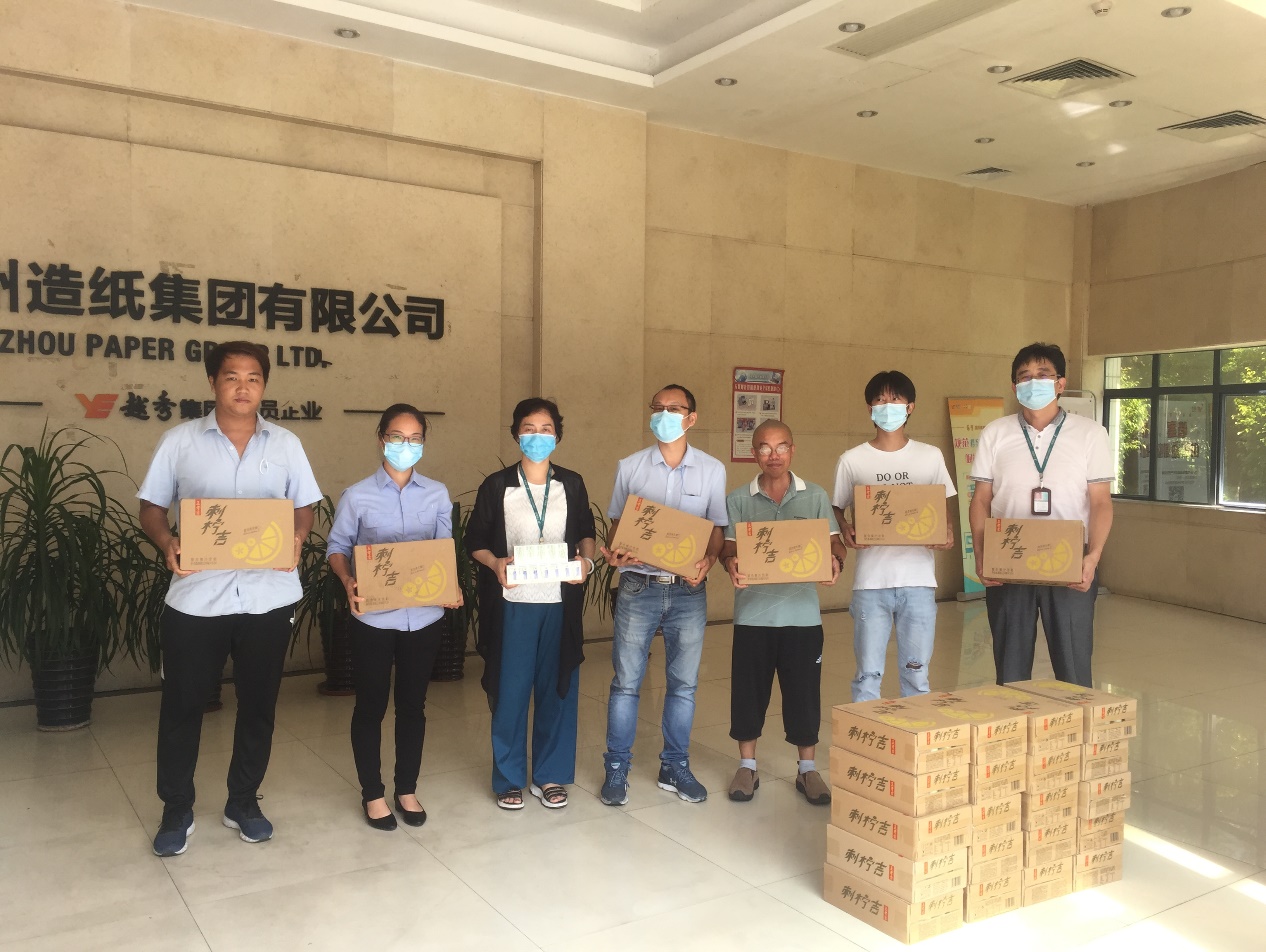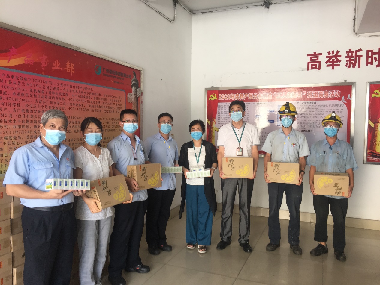 8月14日下午,公司党委副书记、纪委书记、工会主席李小玲,工会副主席周蔚带领工会办公室人员,分别来到新闻纸分会、新产品分会、热电环保分会、生产管理分会、物流管理分会、技术环保分会等一线部门,将一箱箱清凉饮料及一盒盒藿香正气水送到一线员工手中。同时,代表越秀集团工会和公司党政领导向广大员工表示亲切慰问,叮嘱他们在高温天气下工作要注意防暑降温,适度休息,同时要继续做好疫情防控工作,确保生命至上,安全第一。现场的员工纷纷感谢公司领导的关怀,并表示一定会坚守岗位,积极工作。