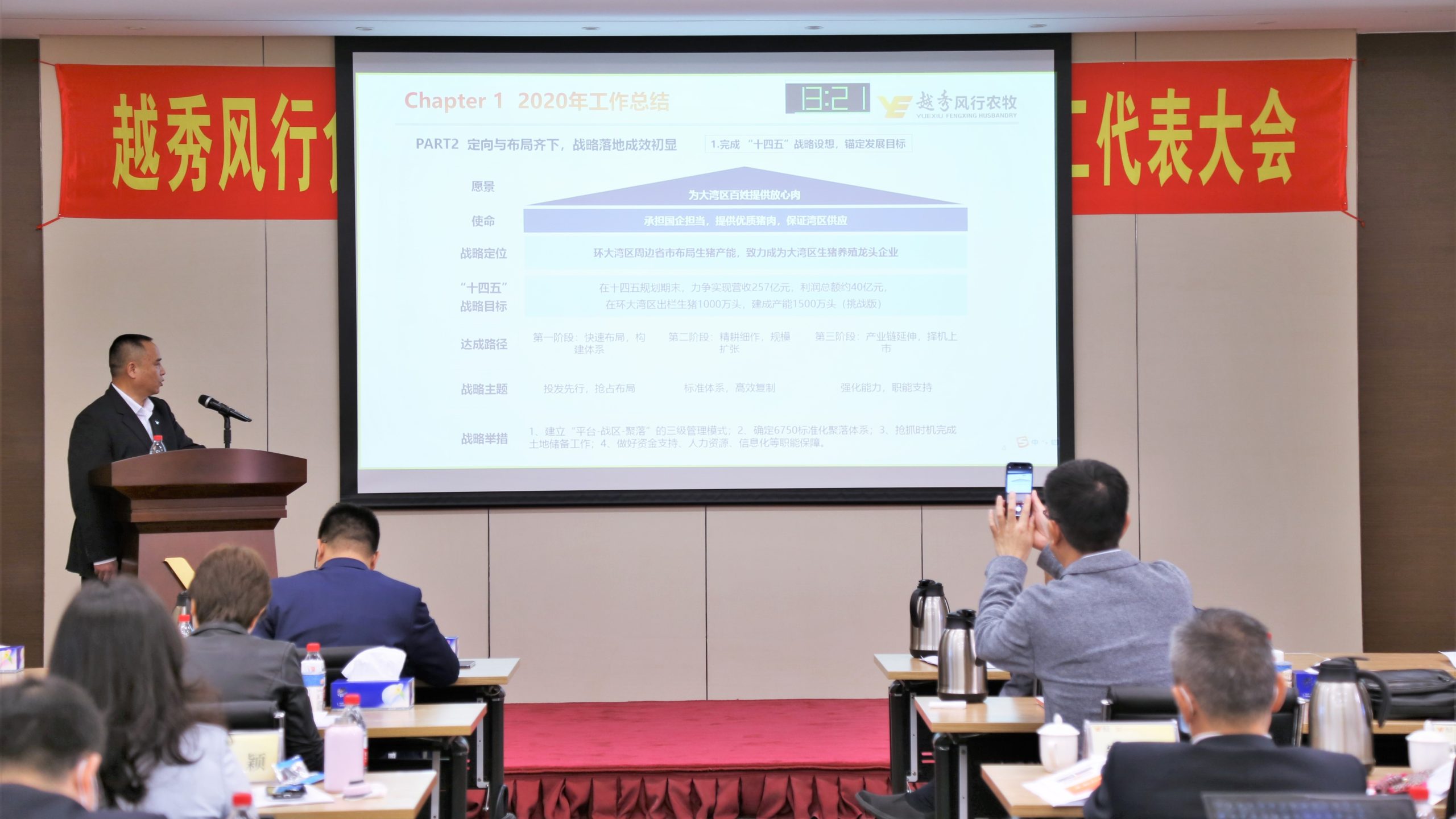 真实干,以“三牛”精神开好局》的讲话,副董事长、总经理韦黎明作《深化战略谋新局 强化能力绘新篇》的2021年度总经理工作报告。会议由越秀风行食品党委副书记常芳主持。